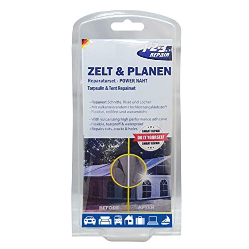 - SCHNELL UND DAUERHAFT: Das Reparaturset ist für Planen aller Art, Anhänger Plane, PKW Anhänger und viele weitere. Der PU Kleber ist dauerhaft, sodass das die reparierte Stelle der Plane wasserdicht ist.