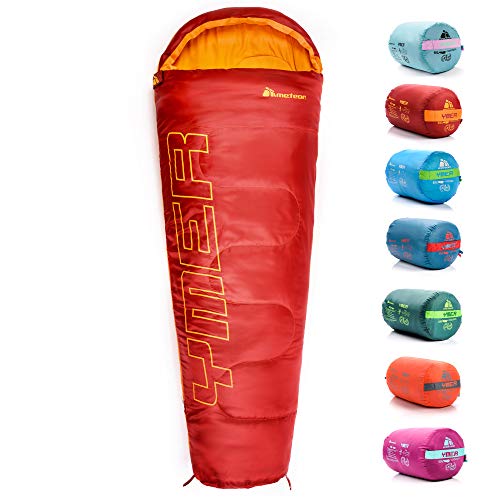 • HOHE QUALITÄT FÜR IHRE FAMILIE - Das Ymer-Modell ist das neueste Modell der Marke Meteor-Schlafsäcke. Das Polyesterfutter sorgt für Komfort und Weichheit bei Berührung. Die hohle Faserfüllung ermöglicht eine noch bessere Wärmeisolierung bei geringer Größe und geringem Gewicht. Das richtige Design des Schlafsacks schränkt die Bewegung nicht ein, sodass Sie sich auf jeder schlafenden Reise ausruhen können. Der Schlafsack wurde mit Ihrem Komfort und Sicherheit entworfen